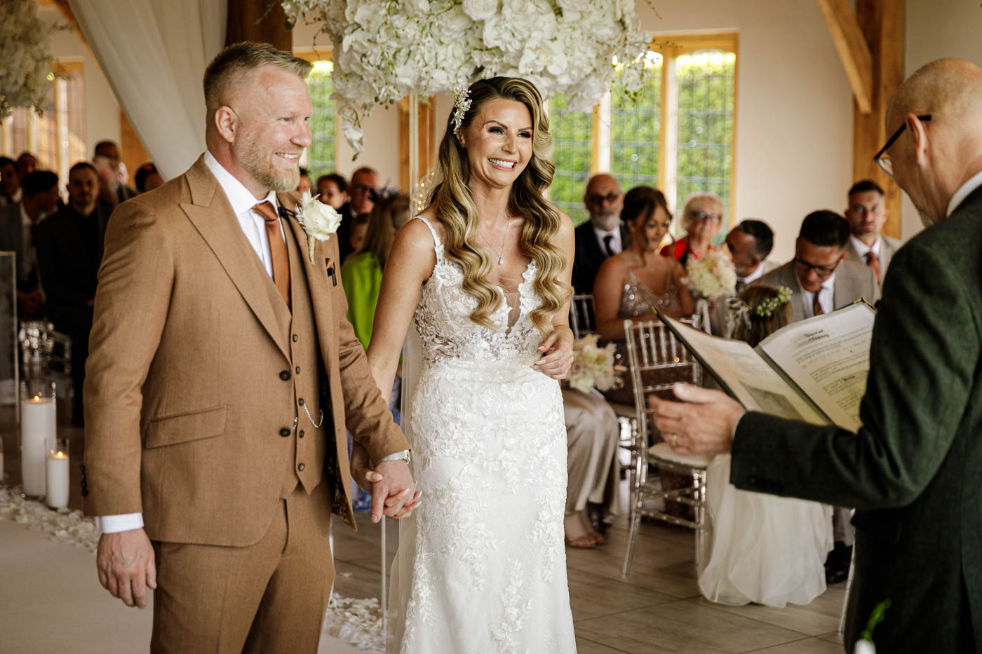 Set in the stunning Cheshire grounds of Merrydale Manor, the ceremony room beautifully dressed and looked stunning. The joy on their faces when they first saw each other said it all. As they were pronounced husband and wife they shared their first kiss and the guests welcomed the newlyweds.