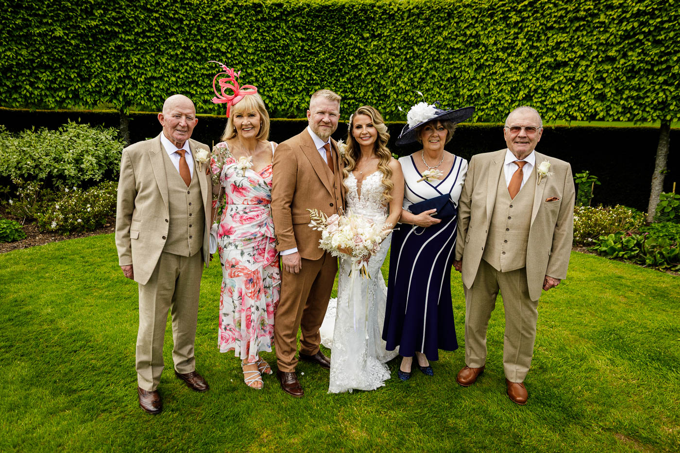 After the ceremony was the obligatory confetti corridor photo, then followed a drone photo of the whole wedding party. Shortly after we walked over to the reception suite for some refreshments, then to start on the family photos. To help, we had the fantastic Tall Toast Master conducting the day and also helping me and Vicky organising guests. Once I finished the group photos I started with the bridal portraits around Merrydale Manor’s stunning gardens.